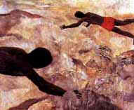 have inspired much of his art. Dawn, Papua 1964 Oil over synthetic paint on composition board, 76 x 122 cm signed lower left - private collection. |